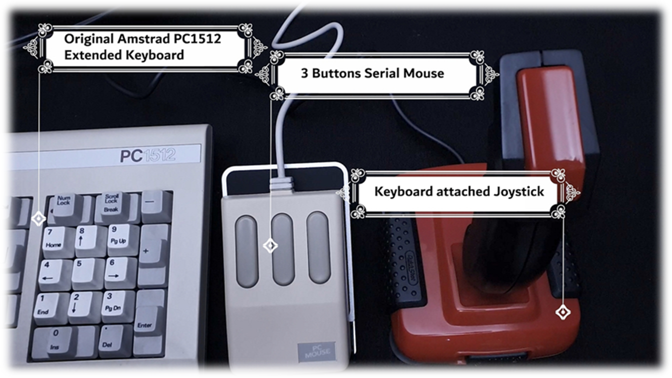 · Original Amstrad AT keyboard · Serial port mouse · Keyboard attached Joystick · Original Amstrad PC1512 User Instructions Book (1) · Amstrad PC1512 Boot Disks: · Amstrad DOS 3.2 · Amstrad GEM Desktop & BASIC · Amstrad DOS PLUS |