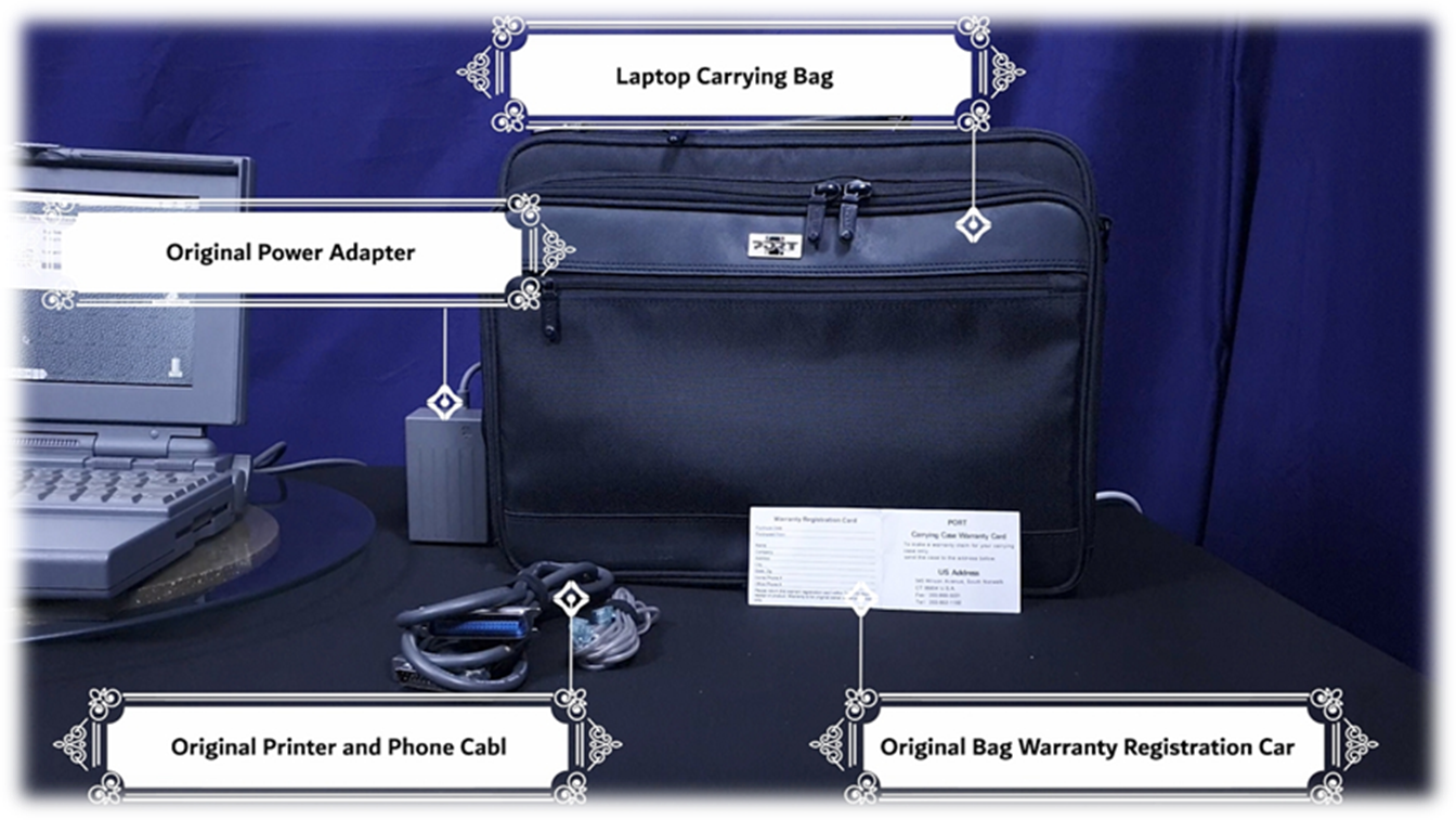 · Original Apple laptop Power Adapter · Laptop Carrying Bag · Printer and phone cables |
