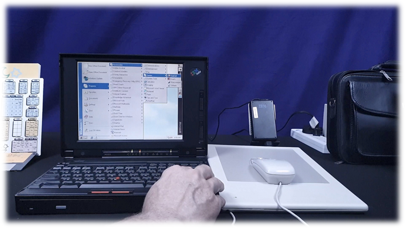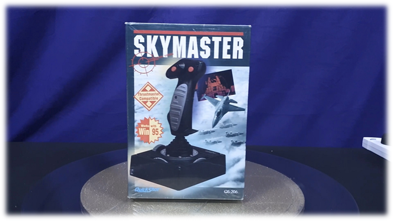 · Original AC adapter · New Old Stock (NOS) WIZ PS2 Graphics Digitizer including Mouse, Graphics Pad, Connection Adapters, Manuals, and Software in 3.5” and 2.25” Floppy Disk Formats · Sealed SkyMaster QuickShot QS-206 Flight Simulator Joystick (4 Fire Buttons, Throttle Control, HAT/THROTTLE Switch, XY Axis Adjustment) · IBM Logo Carrying Bag |