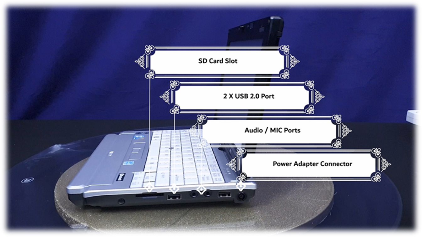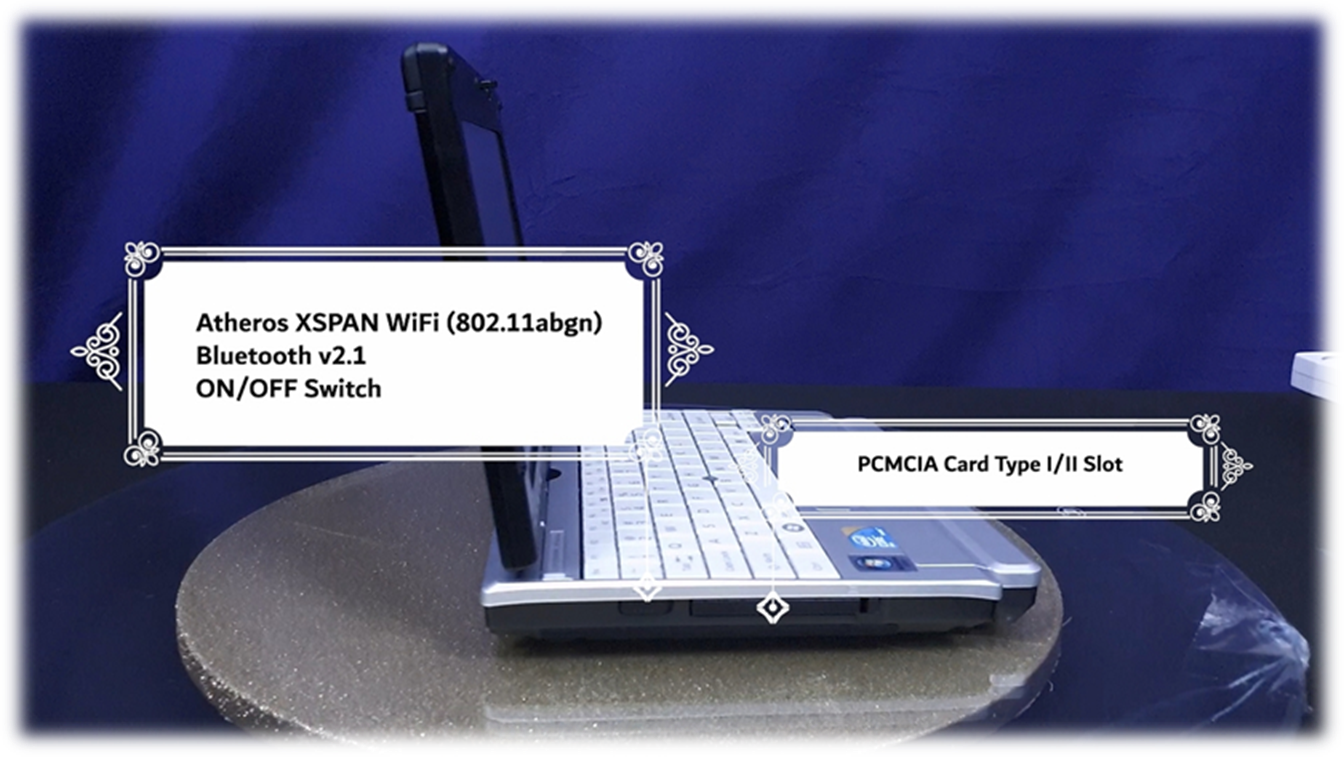 · 2 x USB 2 pin USB Type A · 1.3mp camera · PCMCIA type I/II · Video display ports (HD-15 VGA) · Headphone (2.5mm mini jack, stereo) · SD Card Reader |