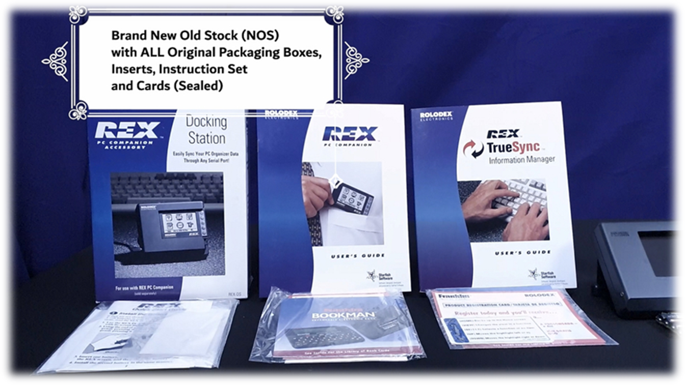 · Brand New Old Stock (NOS) with Original: · Packaging Box and Inserts · Rolodex Rex Desktop Dock Station · Leather Wallet |