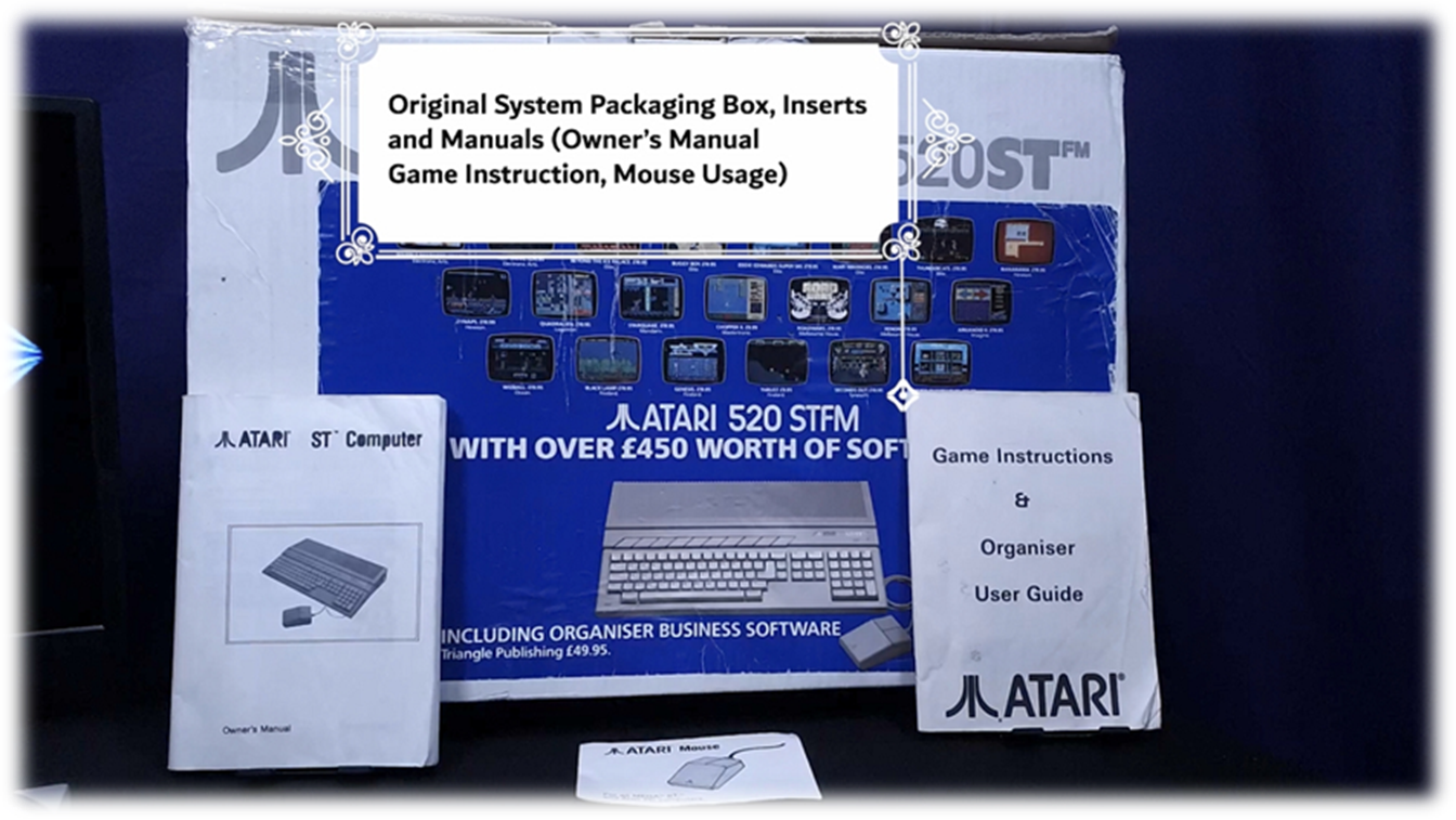 · Original Packaging Box, Inserts, and Manuals · Original Mouse · Original Game Diskettes Bundle with box and manuals: · PAC-MAN Cartridge, Treasure Island Dizzy, Dungeons & Dragons Heroes of the Lance, Gauntlet 2, Baal and The Seven Gates of Jambala |