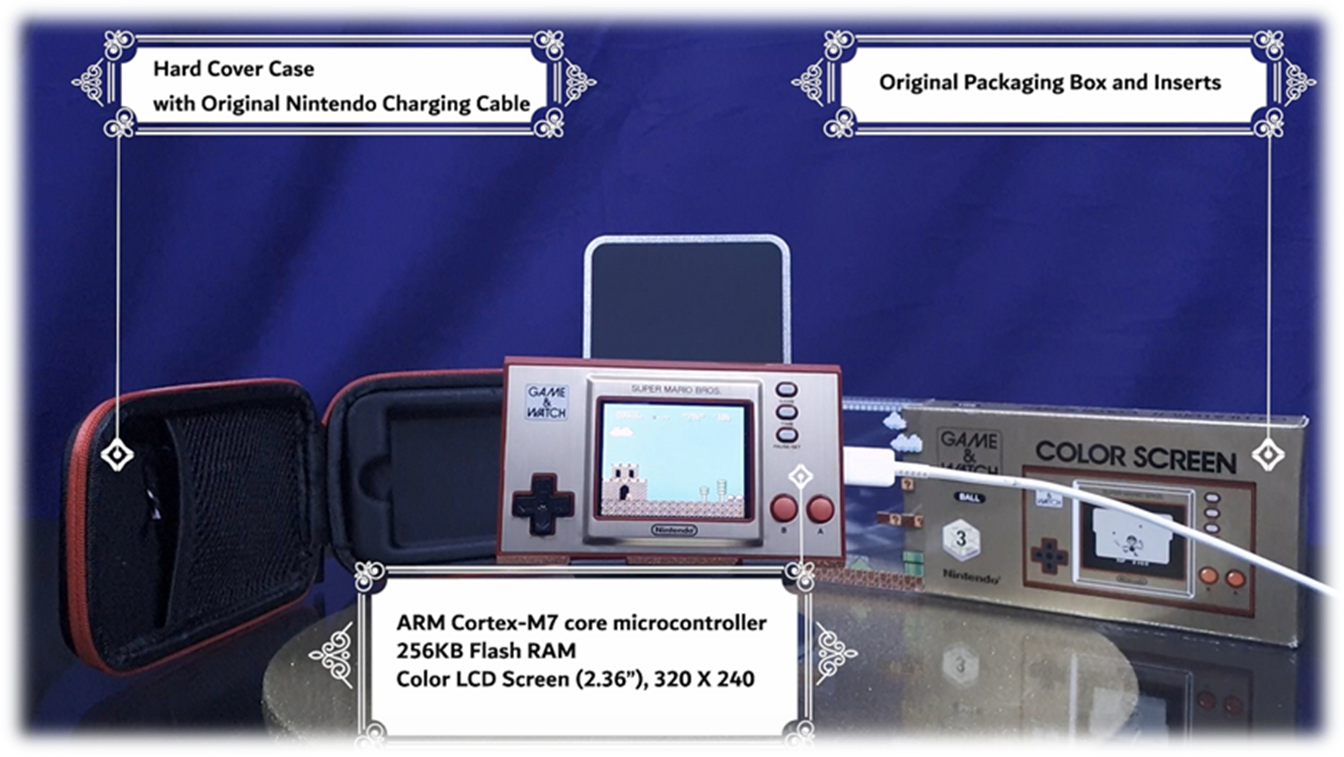 Built-in Pre-loaded Games: · Super Mario Bros. (1985) · Super Mario Bros.: The Lost Levels (1986) · Mario-themed version of Ball (1980) |