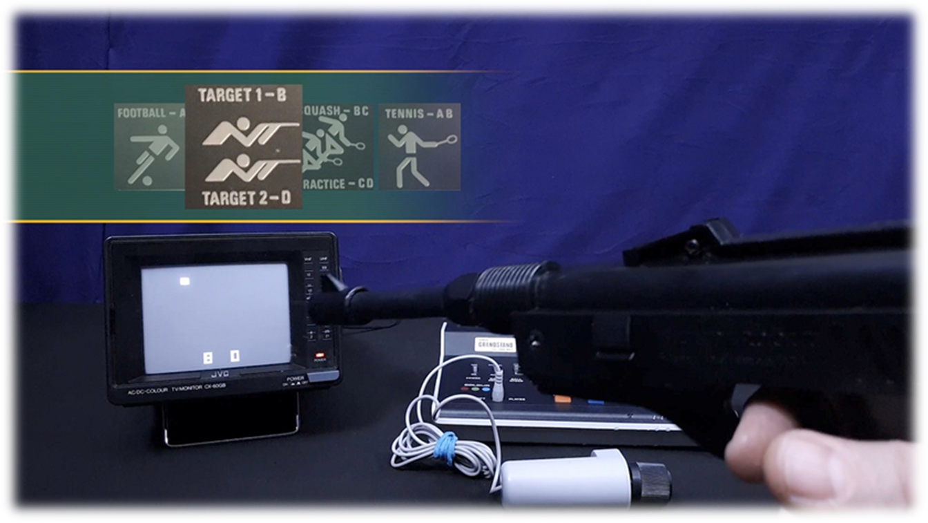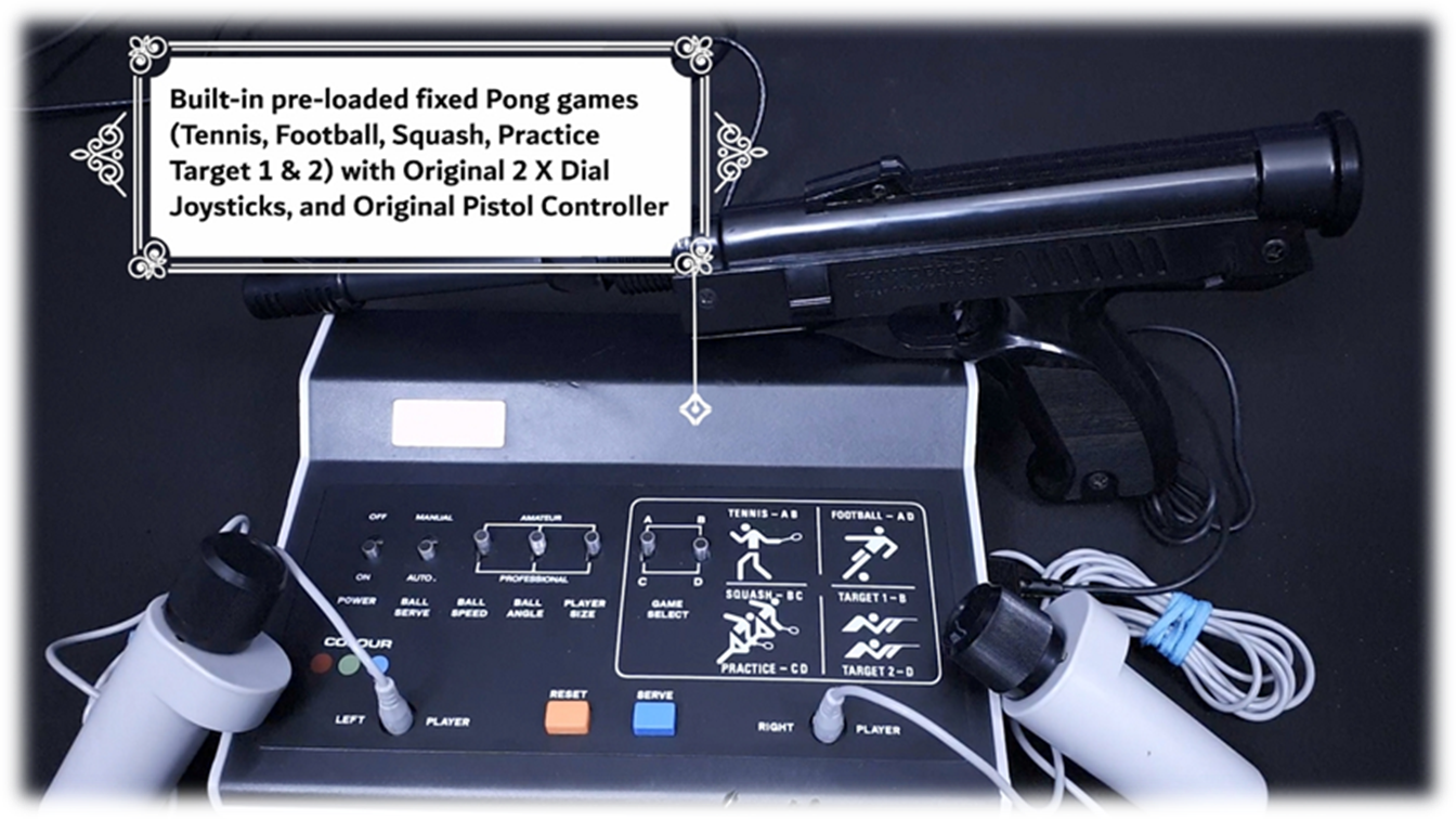 Built-in pre-loaded fixed Pong games: · Tennis · Football · Squash · Practice · Target 1 & 2 (using CRT TV and Pistol-Rifle Controller) |
