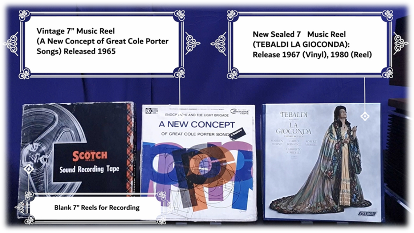 Sealed 7″ Music Reel (TEBALDI LA GIOCONDA): · Marilyn Horne · Carlo Bergonzi · Robert Merrill · Laberto Gardelli · Vintage 7” Music Reel (A New Concept of Great Cole Porter Songs) Released 1965 · 3 X Blank 7” Reels for Recording |
