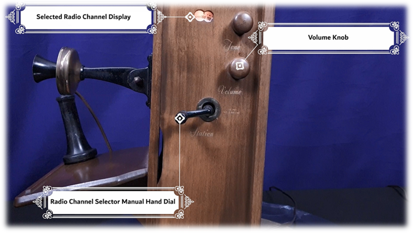 · Radio Channel Selector Manual Dial Hand · Volume control Knob · Volume Tone Knob |