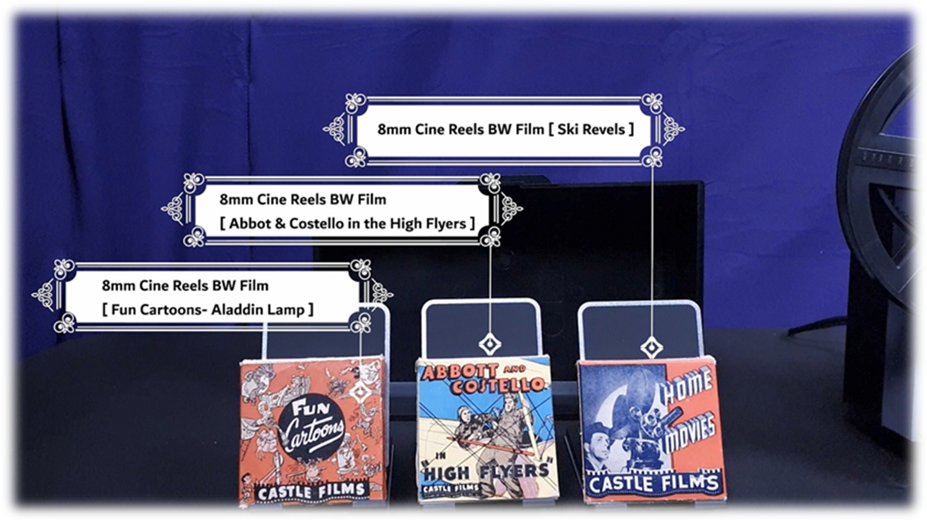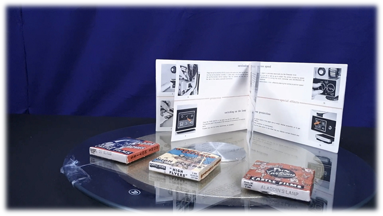 · Original Vintage Box and Inserts · Original Instruction Booklet · Original Power Lead · 8mm Cine Reels Film Bundle: · Vintage Castle Film “Abbot & Costello in the High Flyers” · Vintage Castle Film “Ski Revels” · Vintage Castle Film “Fun Cartoons- Aladdin Lamp” |