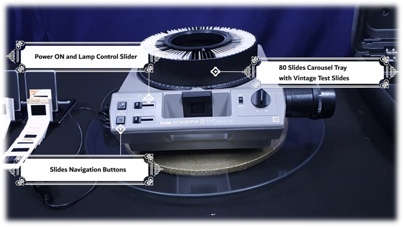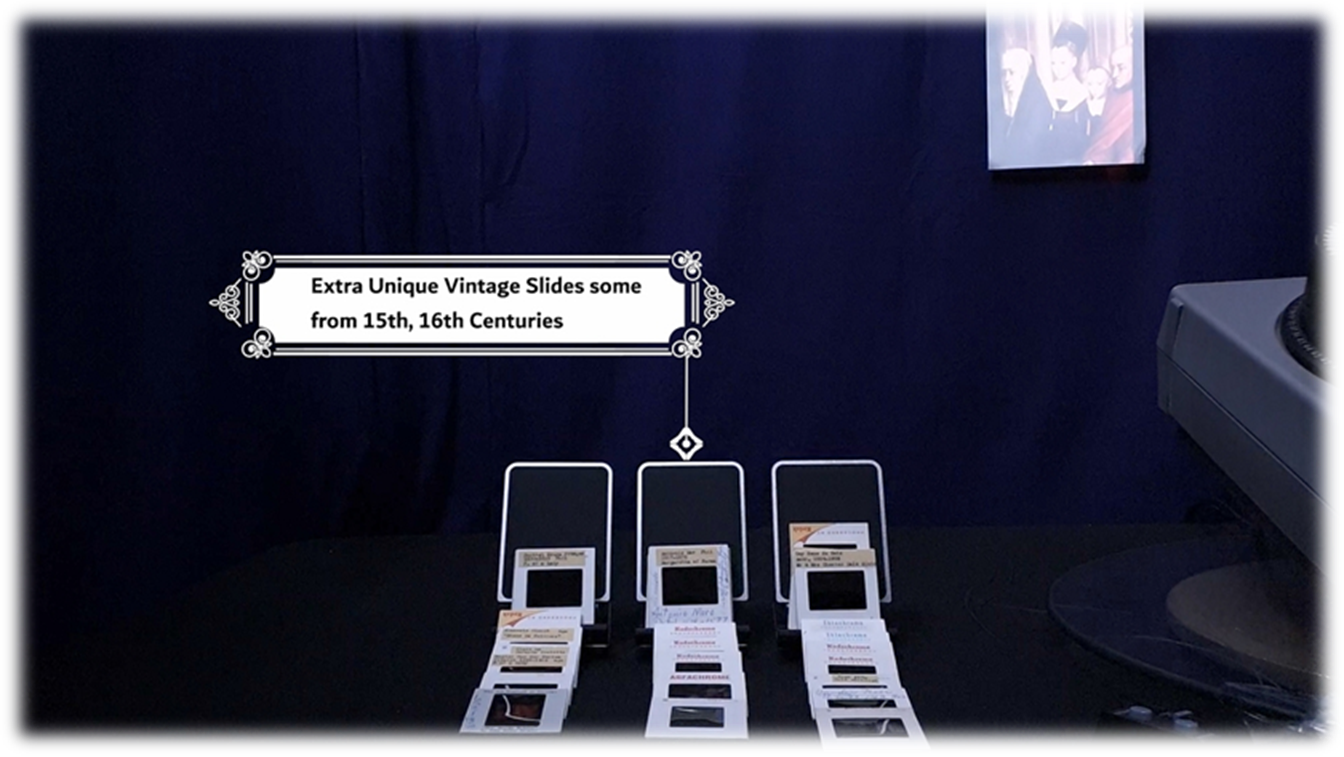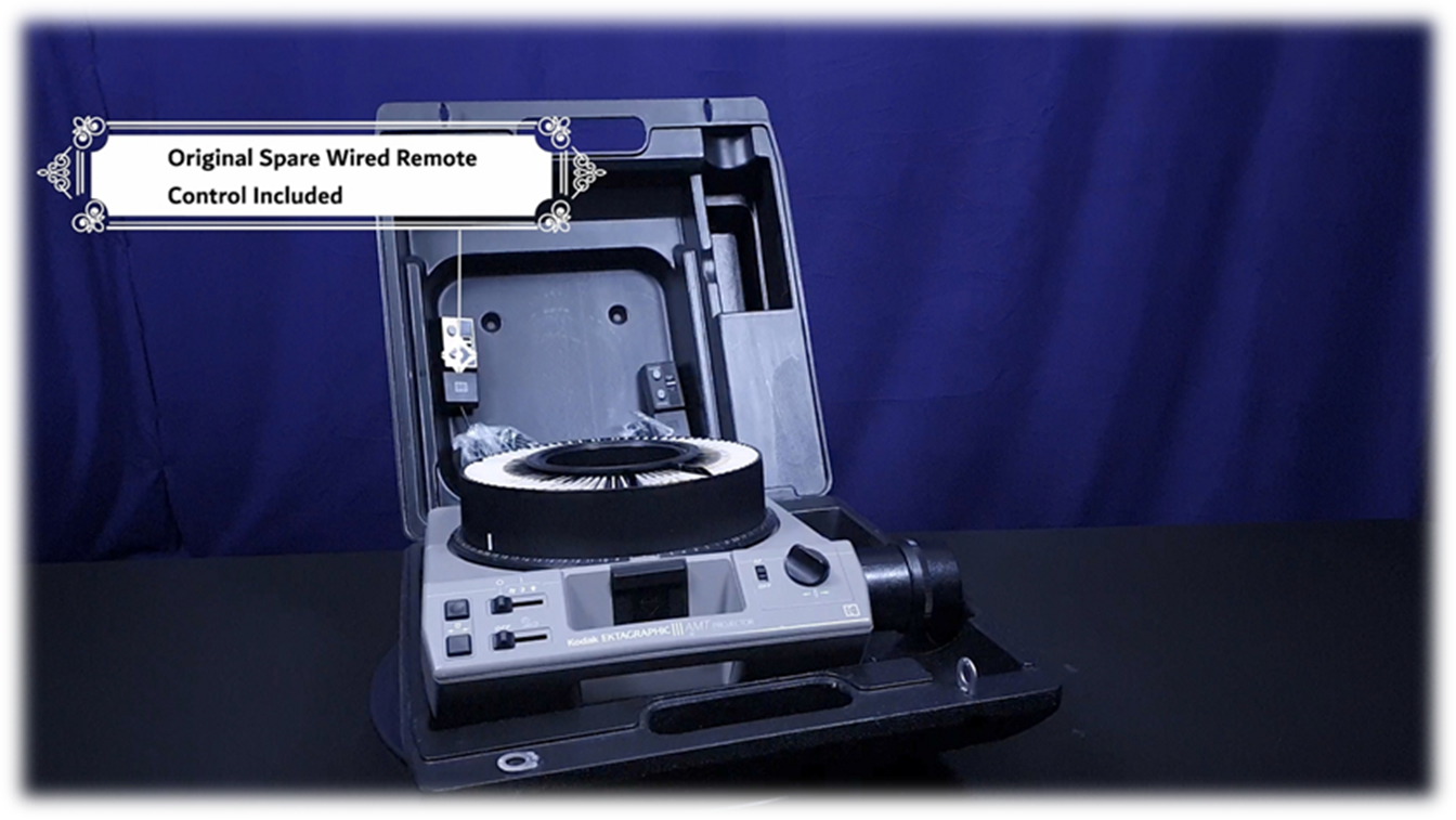 · Hard Cover Carrying Case · 2 X Original Wired Remote Control · Vintage Old Photo 80 Slides for demonstration · Extra Unique Vintage Slides some from 15th, 16th Centuries |