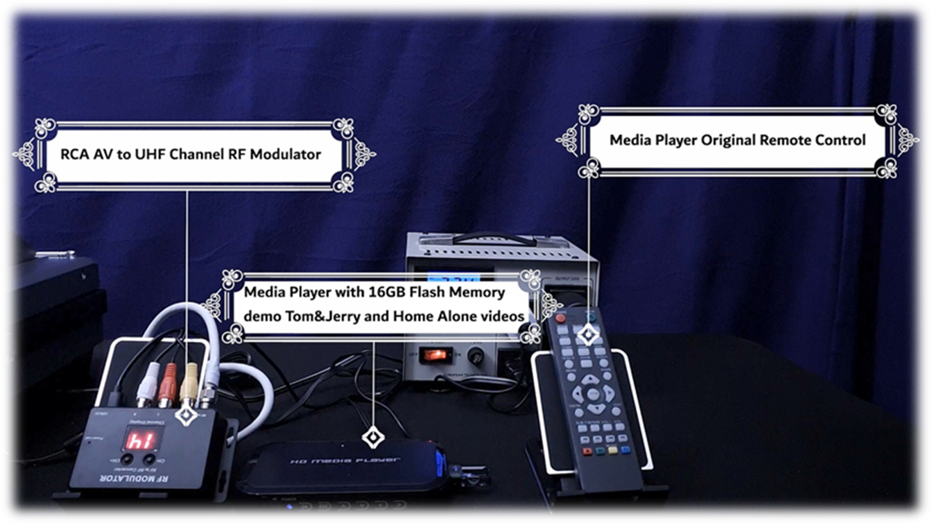 RF UHF Channel Modulator: 100-240V Auto-Switch (External Power Adapter) ·